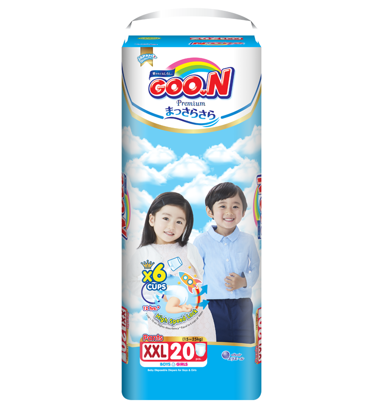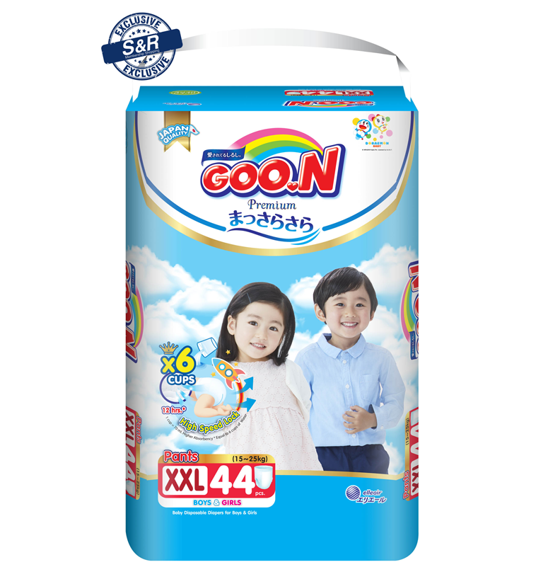 GOO.N Friend (Doraemon) diapers is the economy line of GOO.N that comes in pants variant only. It can absorb up to 4-cups of urine best for day & night use.